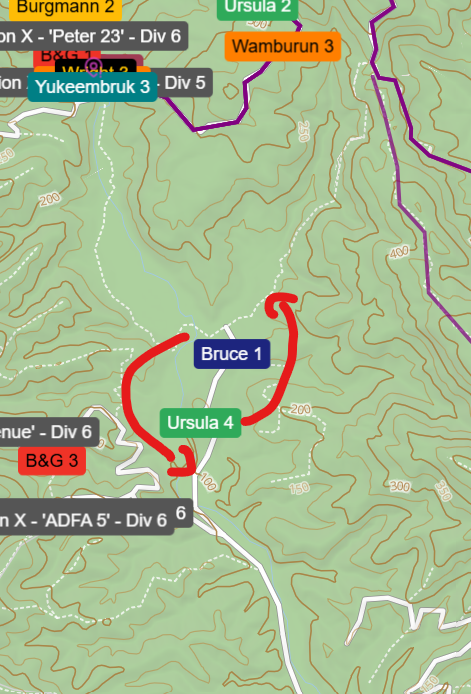 Finally, in a weird turn of circumstances, Bruce 1 and Ursies 4 are going to pass each other on the same trail (they are both lost).